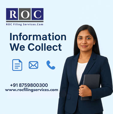 We may collect personal details such as your name, email address, phone number, company information, and other data required for ROC filings and compliance services. We also collect non-personal information like browser type, IP address, and pages you visit on our website.